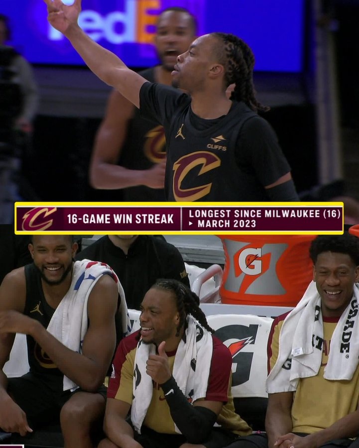 轉(zhuǎn)播方給出數(shù)據(jù),騎士的16連勝也是自2023年3月的雄鹿以來,聯(lián)盟最長的連勝紀錄。