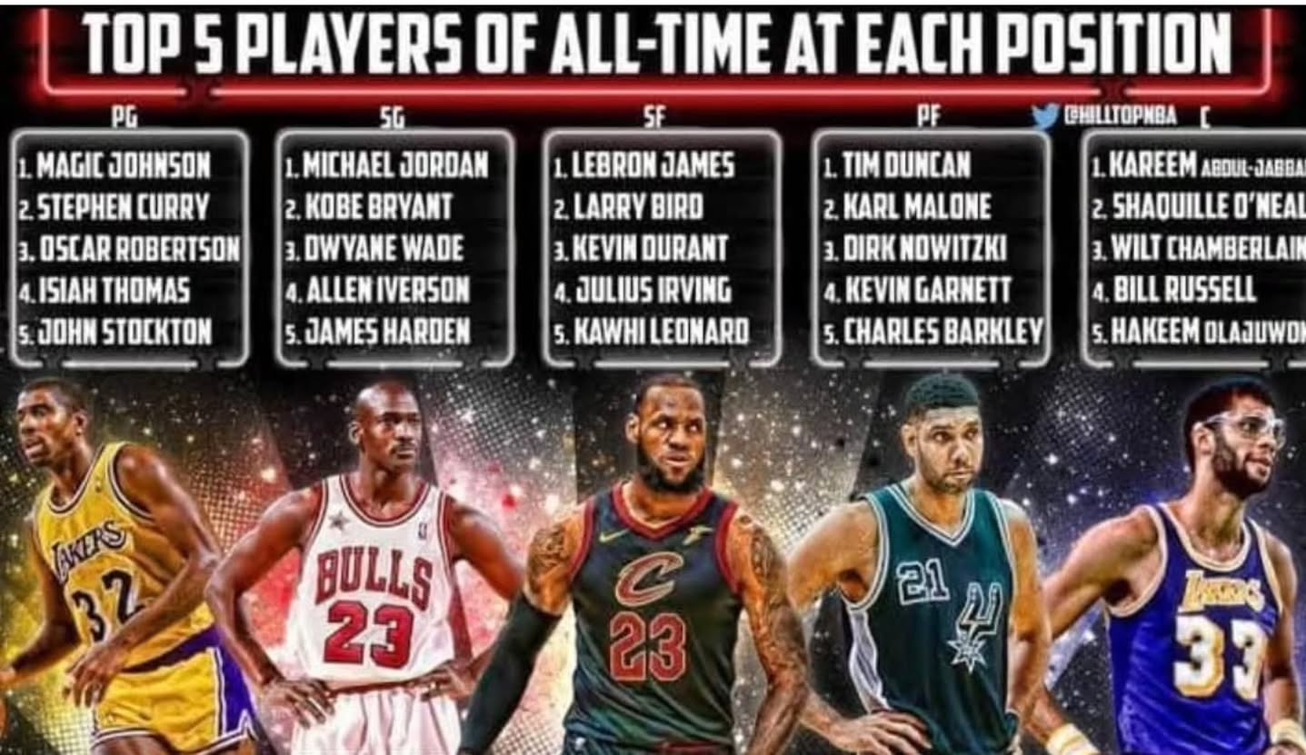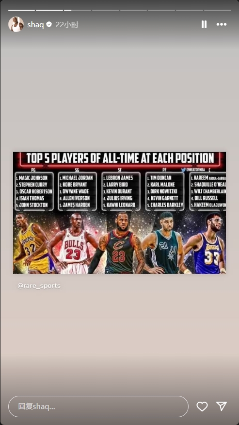 鯊魚曬各位置歷史TOP5:后衛(wèi)魔術(shù)師/喬丹 前鋒老詹/石佛 中鋒天勾