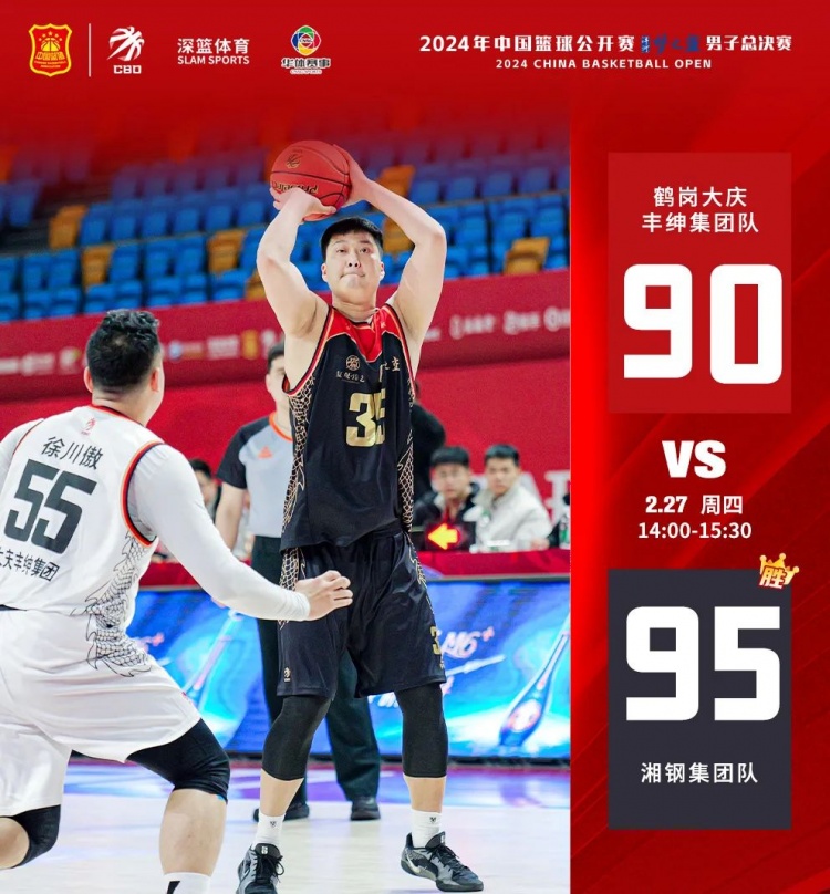 比賽開始,兩隊上來比較慢熱。隨后大慶豐紳集團積極拼搶前后場籃板,牢牢把握籃下優(yōu)勢,率先取得領(lǐng)先。湘鋼集團組織快攻,同時在外線穩(wěn)定輸出,緊咬比分。半場結(jié)束,大慶豐紳集團48-46領(lǐng)先湘鋼集團。下半場,兩隊打得依舊膠著。末節(jié)90平后,湘鋼集團26號陳雙三分命中,2號達斯坦·哈爾恒搶斷后上籃得分,幫助湘鋼集團95-90戰(zhàn)勝大慶豐紳集團。