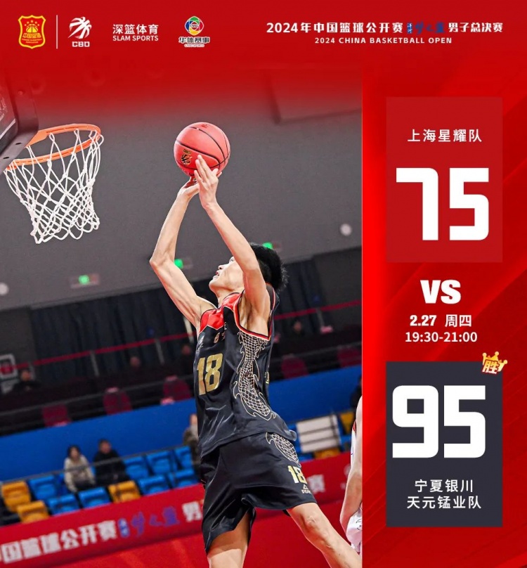 上半場,兩隊打得相對膠著,比分緊咬。首節(jié)戰(zhàn)至19-18,上海星耀領(lǐng)先一分。次節(jié)28平后,上海星耀24號劉暢連續(xù)命中三分,21號高文浩兩分再打中,12號周顧軒1投1罰得3分,上海星耀打出一波得分小高潮。隨后寧夏天元錳業(yè)奮起直追,上半場結(jié)束,上海星耀47-42領(lǐng)先寧夏天元錳業(yè)。下半場,8號于思洋、29號于哲扛起寧夏天元錳業(yè)進攻大旗,在第三節(jié)實現(xiàn)反超。末節(jié),上海星耀手感欠佳,寧夏天元錳業(yè)在外線多次投中,繼續(xù)擴大領(lǐng)先優(yōu)勢,最終上海星耀75-95不敵寧夏天元錳業(yè)。