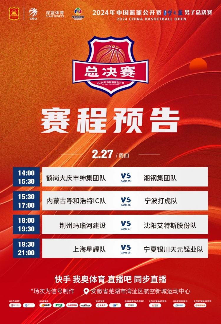 2月26日,2024年中國籃球公開賽洋河夢之藍男子總決賽在安徽省蕪湖市灣沚區(qū)航空新城運動中心打響。在首輪四場比賽中,艾特斯股份、寧夏天元錳業(yè)、寧波打虎、湘鋼集團取得勝利。