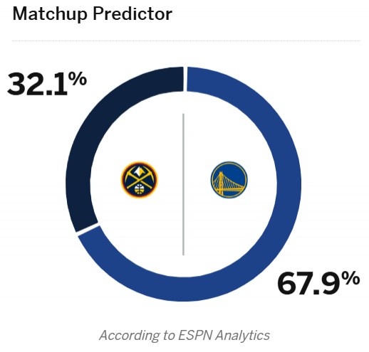 今天,ESPN預測了本場比賽的勝率,其中,勇士為67.9%,掘金為32.1%。