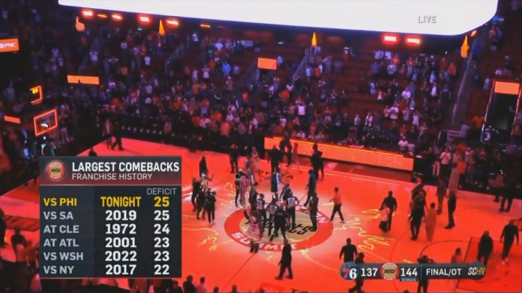 25分也追平了火箭隊史最大的落后分差逆轉(zhuǎn),他們在2019年曾逆轉(zhuǎn)馬刺25分。