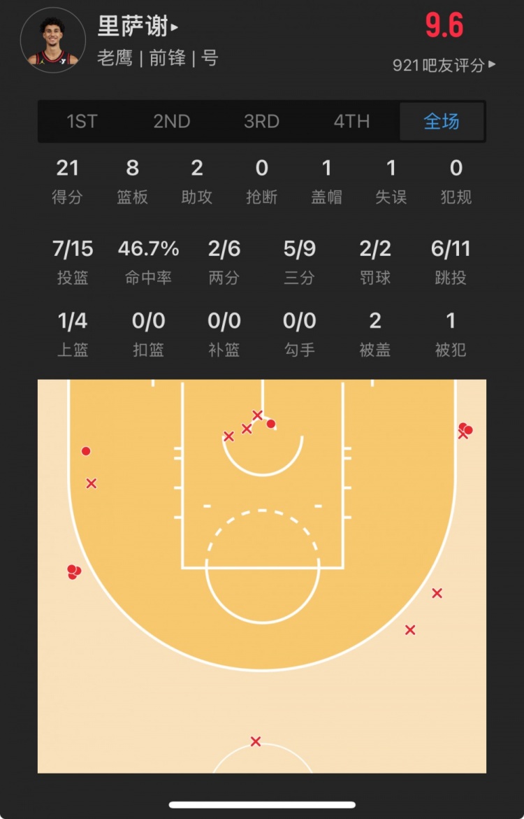 老鷹狀元秀 扎卡里-里薩謝 登場(chǎng)23.6分鐘