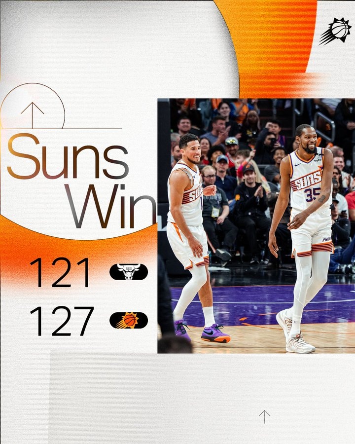 賽后,太陽官方曬出本場贏球海報,本場發(fā)揮出色的核心杜蘭特和布克登上封面。