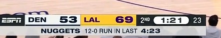 宕機(jī)了!湖人四分半一分沒得 被掘金打了一個12-0