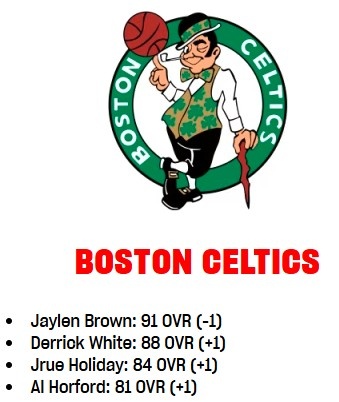 3月21日訊 今天,NBA 2K更新了球員的能力值,凱爾特人隊的變化情況如下: