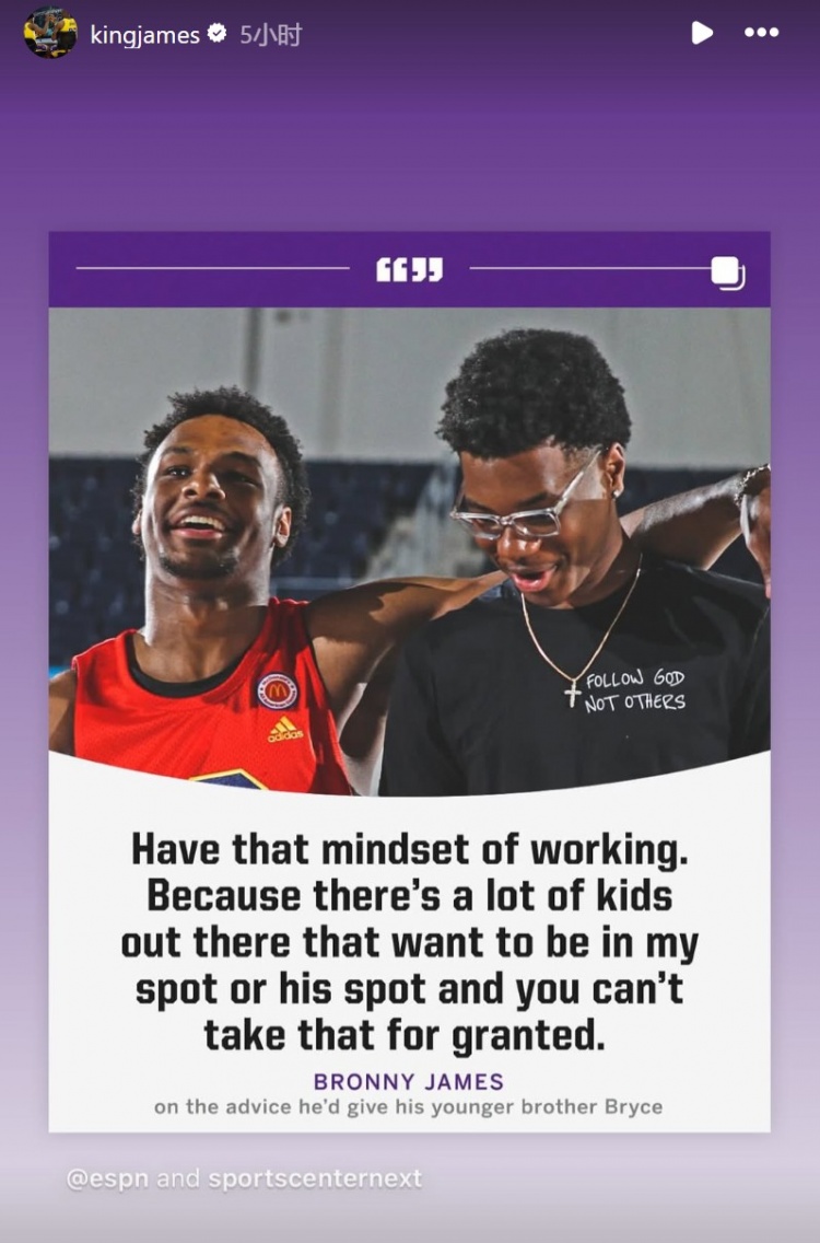 布朗尼建議布萊斯要有努力訓(xùn)練的心態(tài)!父親詹姆斯轉(zhuǎn)發(fā)