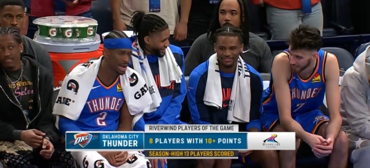 恐怖的深度!雷霆13人有得分入賬創(chuàng)賽季新高 其中8人得分上雙!