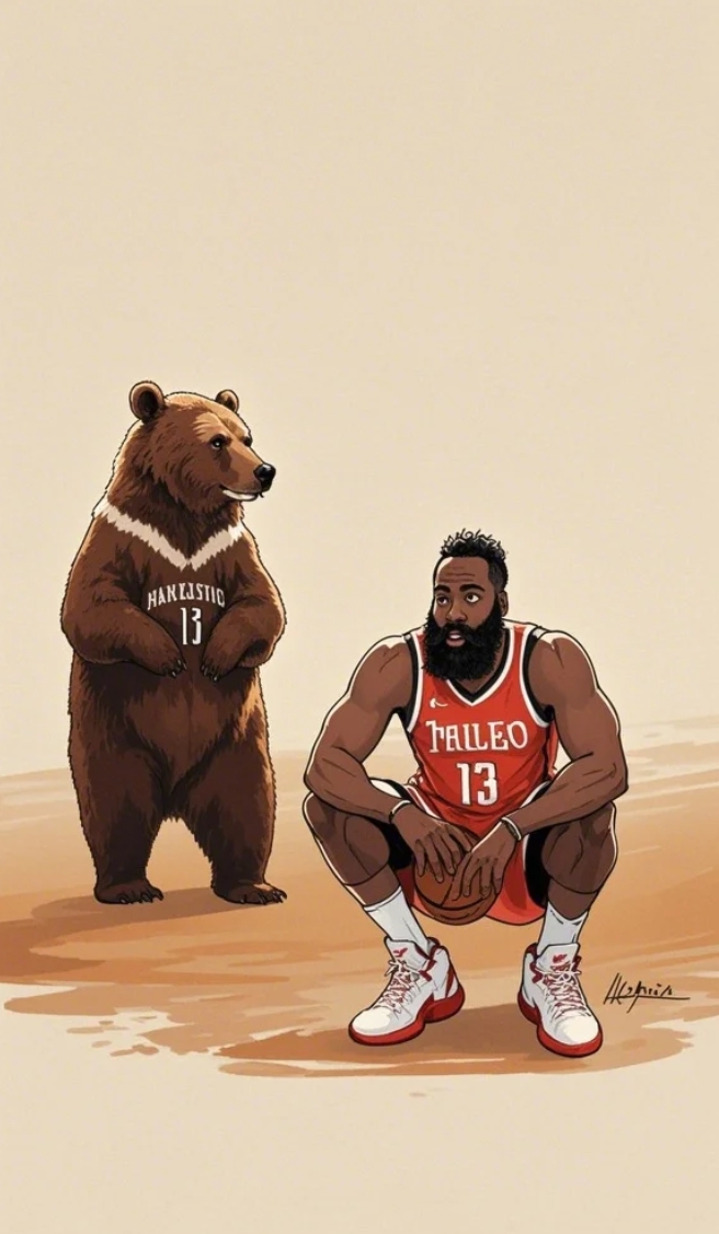 【AI繪圖】寵物!哈登化身獵熊客輕松擒拿棕熊~