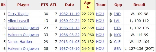阿門這樣一來,阿門(22歲51天)成為了火箭隊史上單場送出7+搶斷最年輕的球員,此前最年輕紀錄是特里-蒂格的22歲223天。