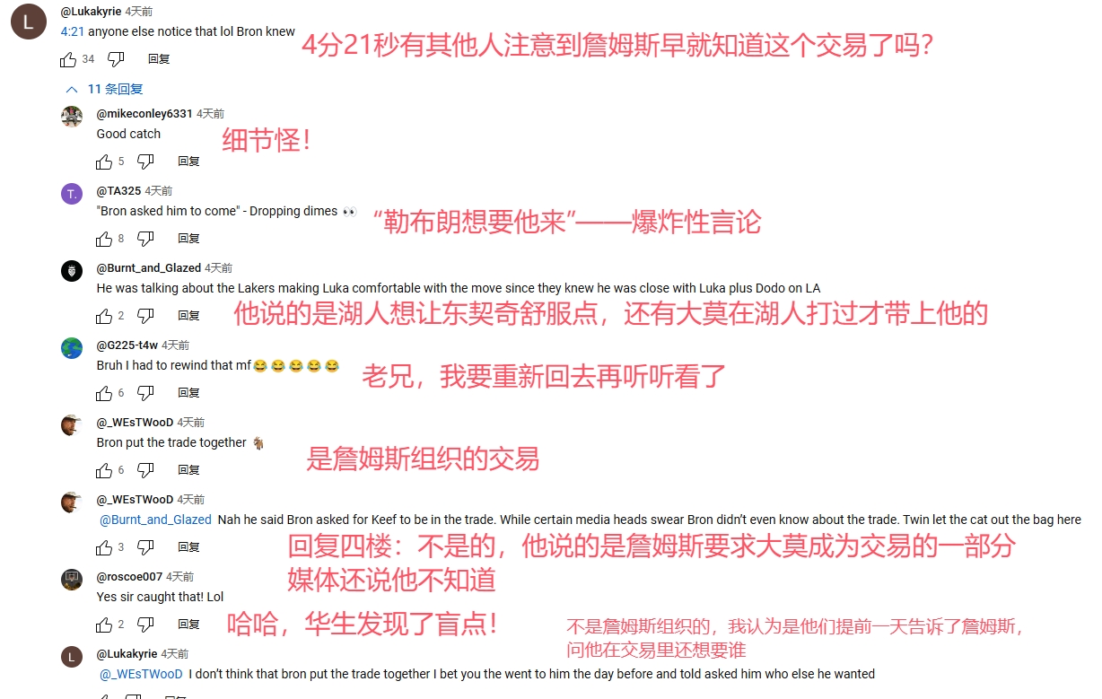該節(jié)目評論區(qū)有網(wǎng)友抓住了莫里斯說的“湖人很想他來,詹姆斯也想要他來?!币痪湓?,表示:“難道詹姆斯早就知東契奇交易?”