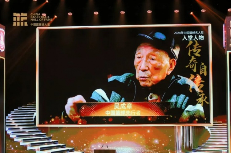 現(xiàn)年101歲的吳成章老人是李震中先生1948年奧運(yùn)會(huì)的隊(duì)友,雖然無法親臨現(xiàn)場,他仍通過視頻表達(dá)了自己進(jìn)入名人堂的喜悅。吳老之子吳忻水代父親領(lǐng)取名人堂徽章,并分享了他們之間的“父子籃球”軼事。