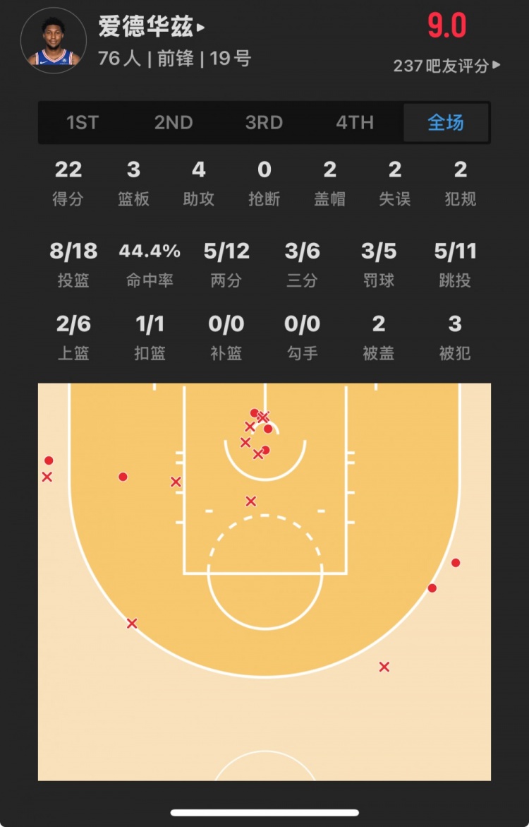 76人落選秀 賈斯汀-愛德華茲 登場(chǎng)39.2分鐘