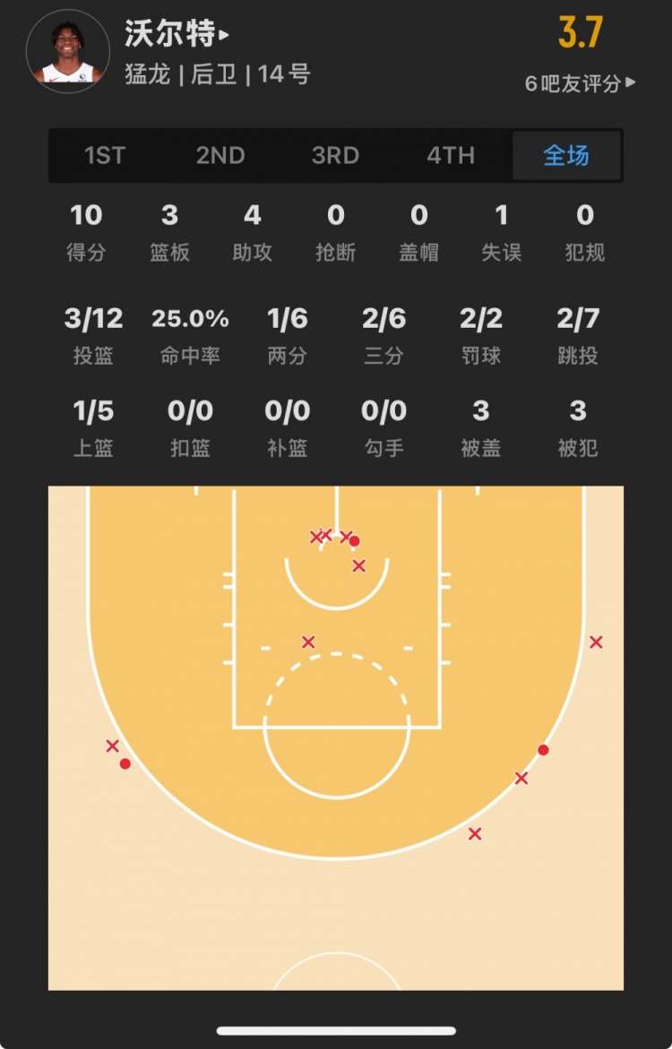 猛龍19號(hào)秀 賈科比-沃爾特 登場(chǎng)24.5分鐘