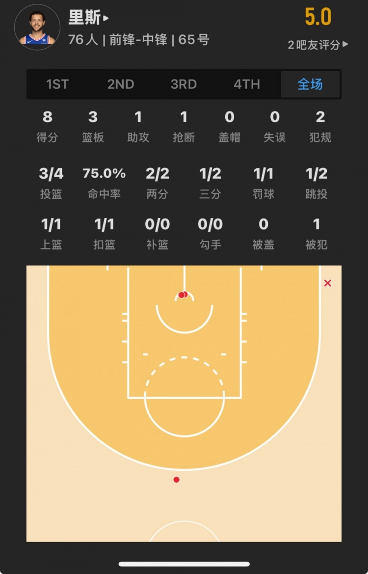 76人落選秀 亞歷克斯-里斯 登場(chǎng)21.3分鐘