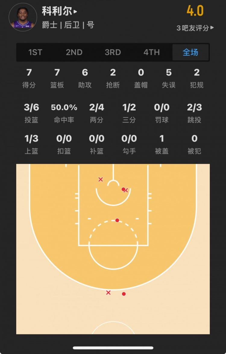 爵士29號(hào)秀 以賽亞-科利爾 登場(chǎng)25.5分鐘
