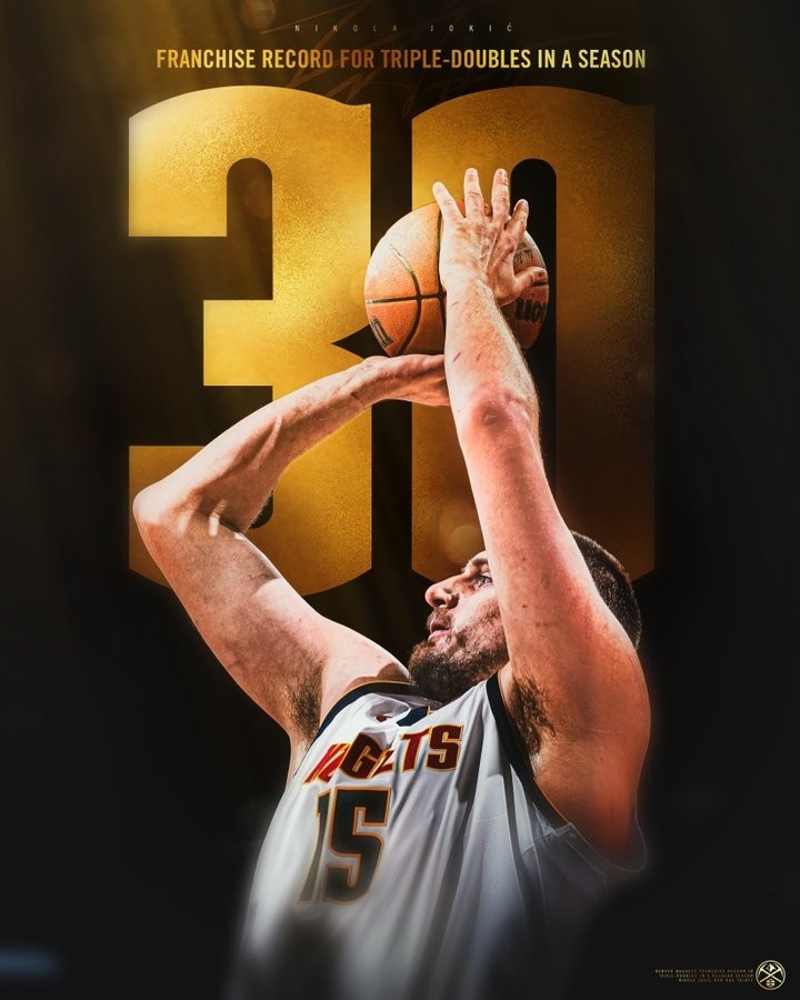 - 打破自己保持的隊史紀錄!掘金官方曬海報:約基奇單季30次三雙!