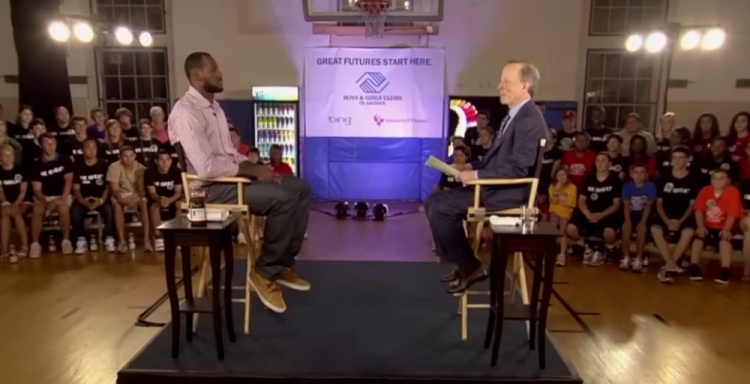 詹姆斯說(shuō):“一切都始于《決定》。《決定》讓我坐下來(lái)思考。因?yàn)橛幸恍┤?,《決定》的想法被提議給我的時(shí)候,說(shuō)是讓我在電視上做一件很酷的事,有點(diǎn)像宣布大學(xué)去向的節(jié)目風(fēng)格。我說(shuō)過(guò)我從未上過(guò)大學(xué),我就覺(jué)得,‘這會(huì)很酷,做出決定,戴上帽子。同時(shí)也能募捐到250萬(wàn)美元善款去做好事。而且這樣也很酷?!?/p>