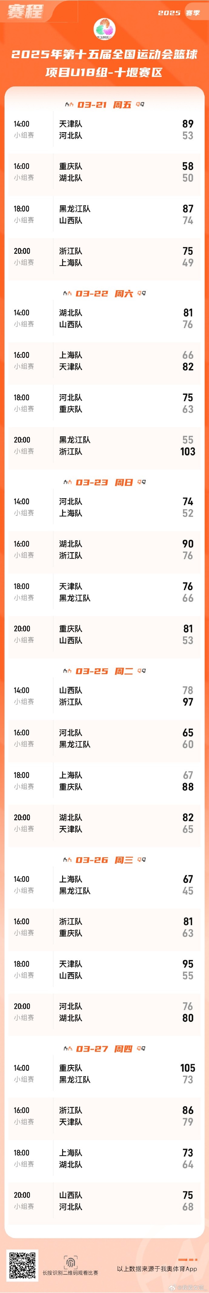 【湖北、重慶、浙江U18女籃挺進(jìn)決賽圈】24場全運(yùn)會(huì)U18女籃資格賽昨晚在湖北十堰全部落下帷幕,最終湖北、重慶、浙江U18女籃成功突圍,昂首挺進(jìn)“十五運(yùn)”決賽圈!