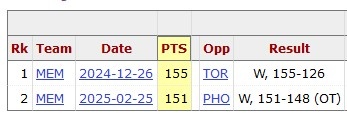 據(jù)統(tǒng)計(jì),162分是本賽季球隊(duì)單場(chǎng)得分的新高,此前紀(jì)錄是灰熊的155分。2024年12月27日,灰熊155-126大勝猛龍。