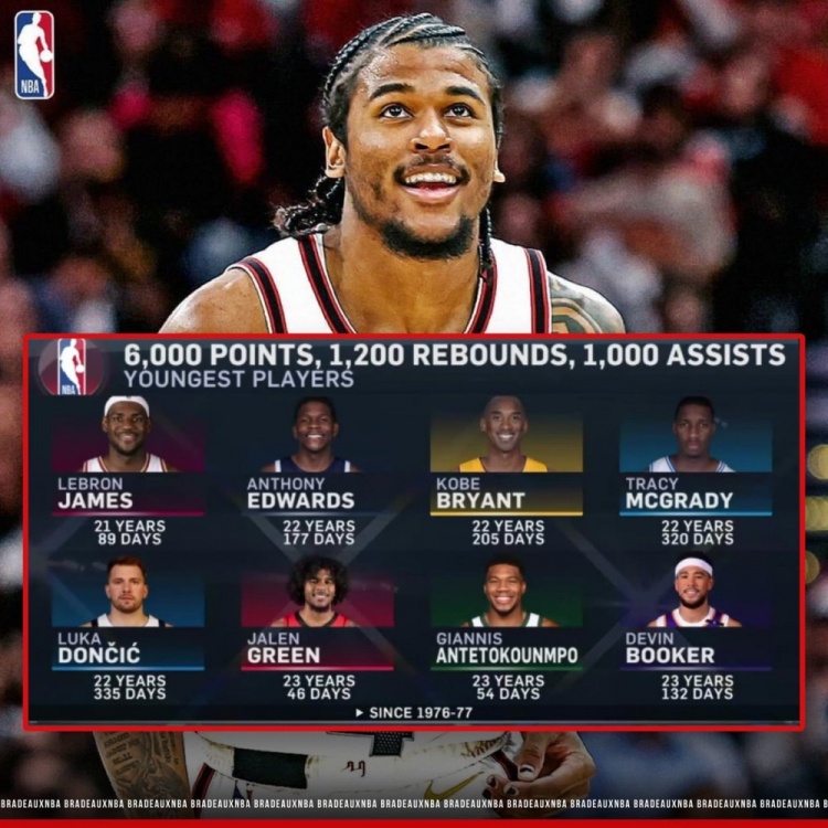 至此,杰倫-格林生涯得分、籃板、助攻數(shù)來(lái)到了6040/1283/1003,他成為了聯(lián)盟自1976-77賽季合并以來(lái)達(dá)成生涯6000分1200板1000助第六年輕的球員(23歲46天),具體如下: