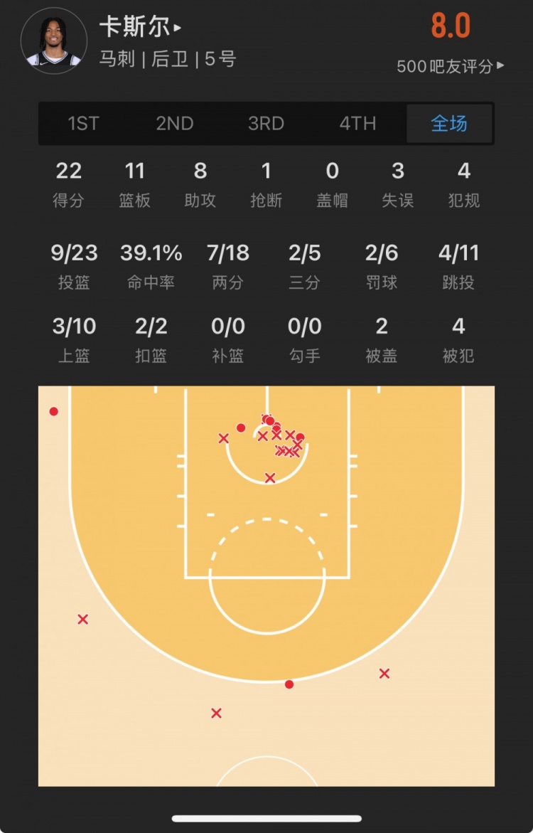 菜鳥(niǎo)丨卡斯?fàn)?2分11板8助 榜眼薩爾22+7 科利爾12中7貢獻(xiàn)16分6助