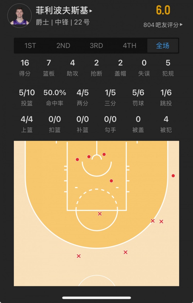爵士32號(hào)秀 凱爾-菲利波夫斯基 登場(chǎng)33.2分鐘