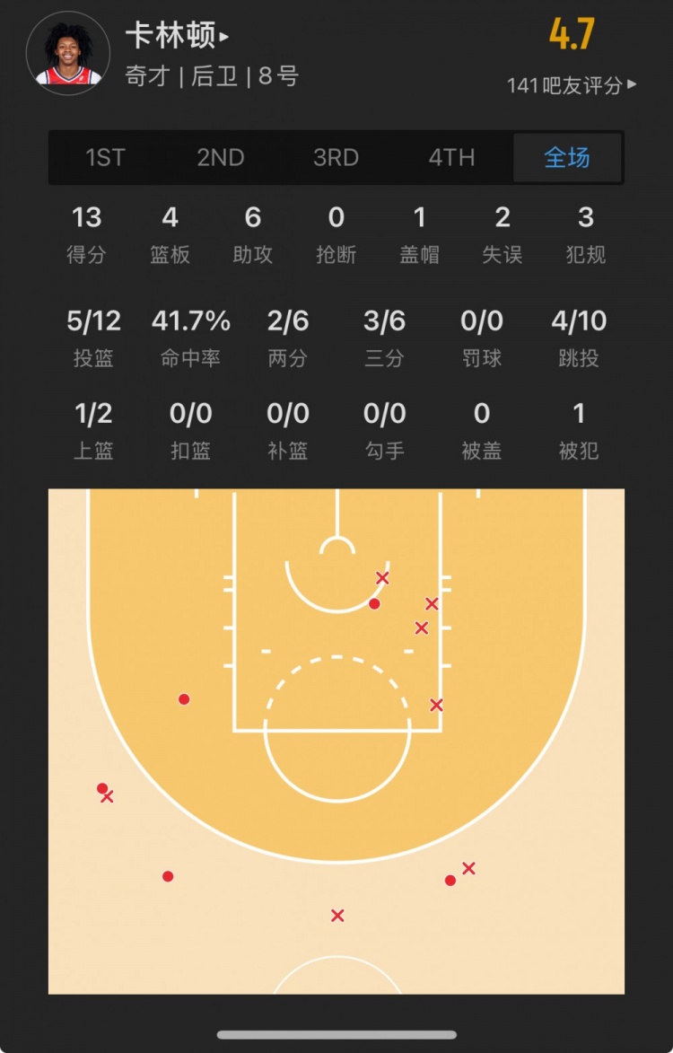 奇才14號(hào)秀 卡爾頓-卡林頓 登場(chǎng)30.7分鐘