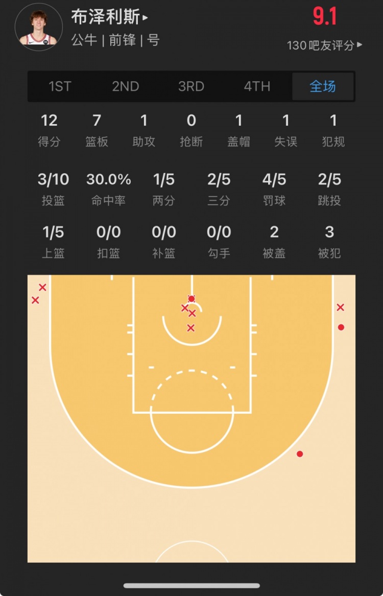 公牛11號(hào)秀 馬蒂斯-布澤利斯 登場(chǎng)24.9分鐘