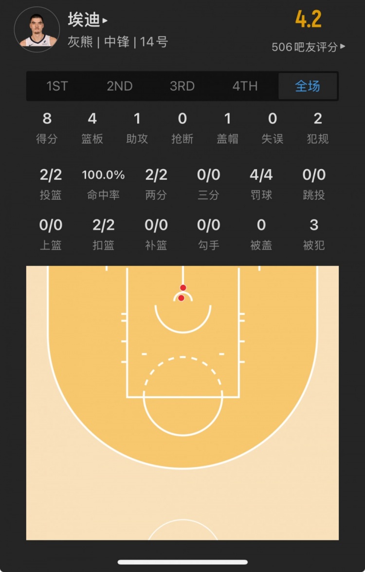 灰熊9號(hào)秀 扎克-埃迪 登場(chǎng)17.0分鐘