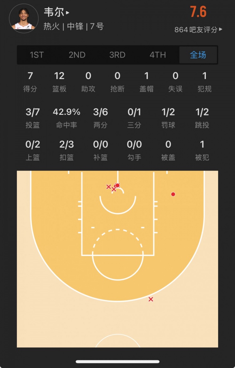熱火15號(hào)秀 克雷爾-韋爾 登場(chǎng)21.4分鐘