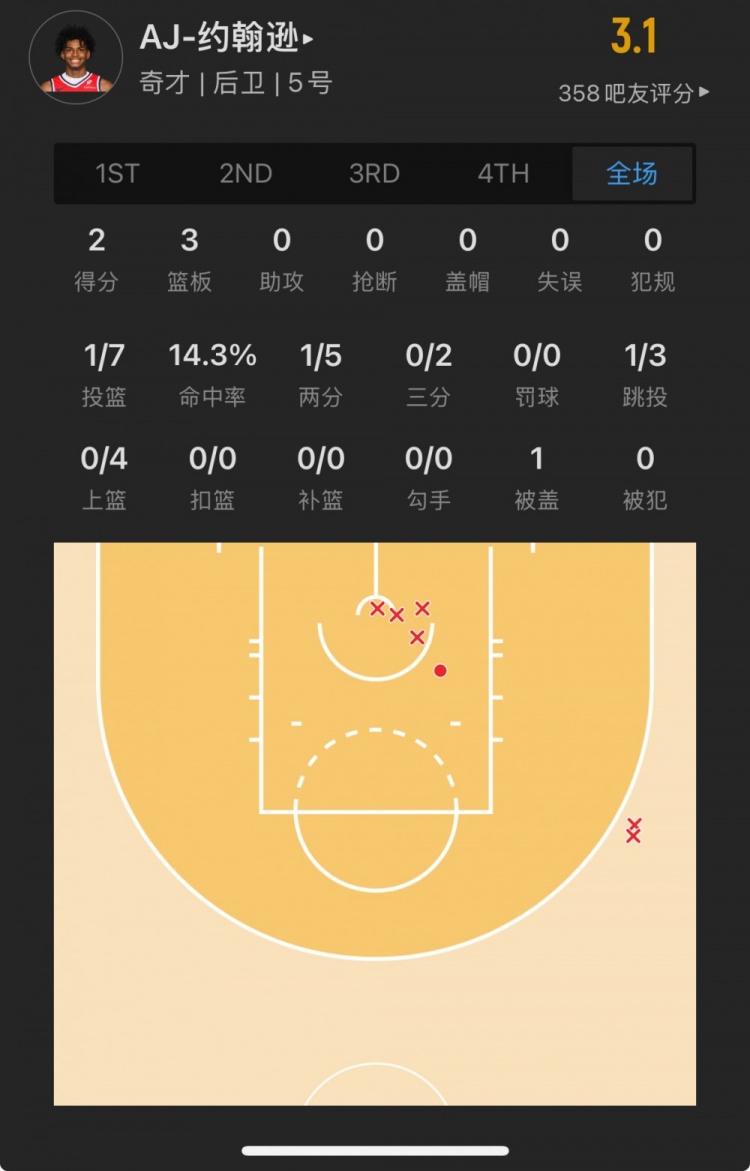 奇才23號(hào)秀 AJ-約翰遜 登場(chǎng)26.6分鐘