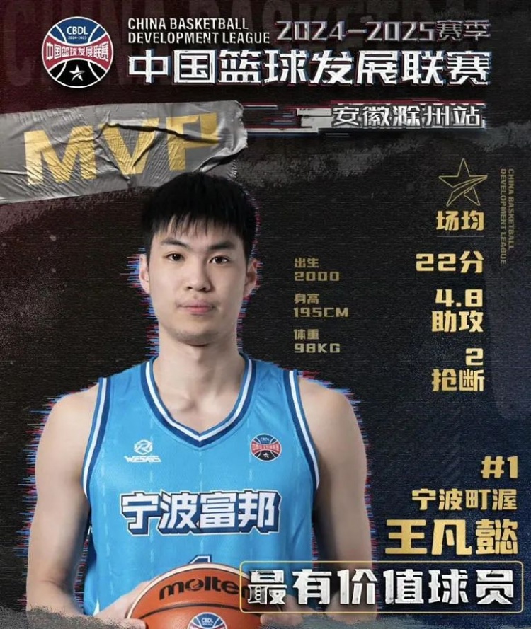 于是,王凡懿就只能去CBDL發(fā)光發(fā)熱了,不出意料的是,他在這里如魚得水……第二階段滁州站比賽,寧波在他的帶領(lǐng)下6戰(zhàn)全勝,王凡懿也以場(chǎng)均22分4.8助攻2搶斷收獲賽事MVP……