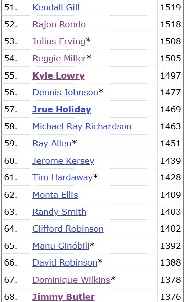 本場(chǎng)比賽過(guò)后,巴特勒的常規(guī)賽生涯總搶斷數(shù)來(lái)到1380次,超越多米尼克-威爾金斯,上升至歷史第67位。