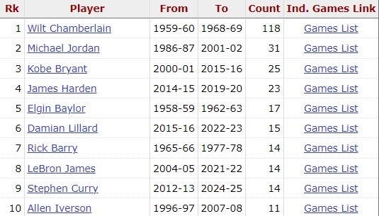 據(jù)統(tǒng)計(jì),這是哈登生涯第24場(chǎng)常規(guī)賽50+,歷史第4多,僅次于張伯倫(118)、喬丹(31)、科比(25)。