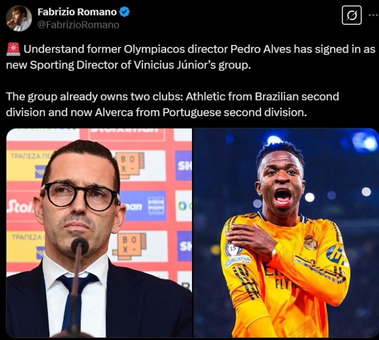 2月27日訊 據(jù)知名轉(zhuǎn)會(huì)專家羅馬諾報(bào)道,前奧林匹亞科斯隊(duì)總監(jiān)佩德羅-阿爾維斯已經(jīng)與維尼修斯團(tuán)隊(duì)簽約,出任團(tuán)隊(duì)的體育總監(jiān)。