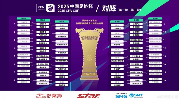 3月16日訊 2025賽季中國足協(xié)杯第1輪結(jié)束爭奪,16支晉級球隊(duì)產(chǎn)生,他們在第二輪將面對中甲球隊(duì)。