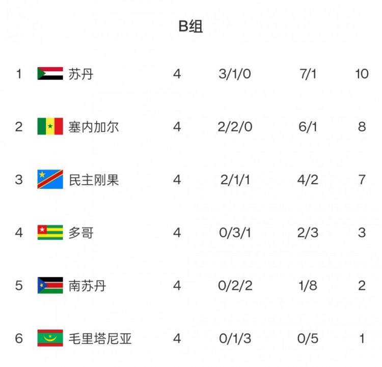 B組:馬內(nèi)領(lǐng)銜的塞內(nèi)加爾意外落后蘇丹,兩隊將于本周五迎來一次正面對決