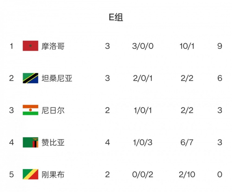E組:摩洛哥無懸念領(lǐng)跑,因厄立特里亞退出僅剩5隊