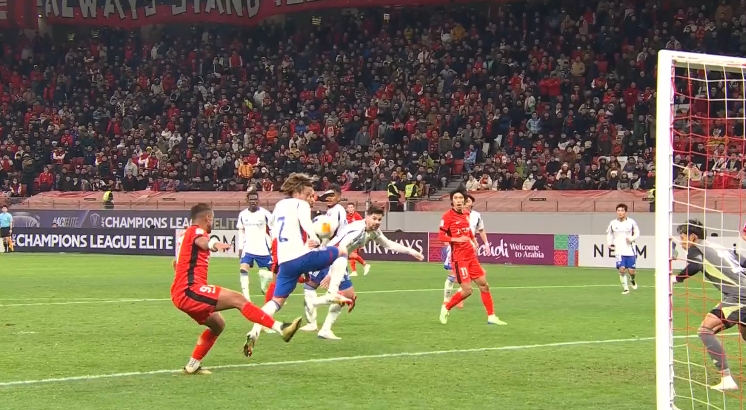 根據(jù)賽后鏡頭可以看到,韓國籍主裁金鐘赫向海港球員解釋此球未判的理由是,球先擊中了橫濱球員的大腿,才反彈到手上,因此按照新規(guī)不會(huì)判手球。