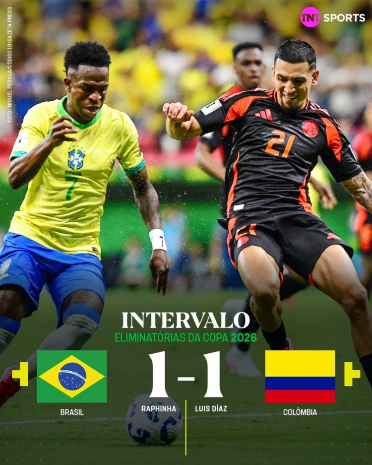半場-拉菲尼亞點射維尼修斯造點迪亞斯扳平 巴西1-1哥倫比亞