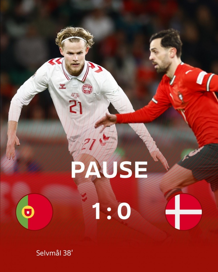 半場(chǎng)結(jié)束,葡萄牙1-0丹麥。