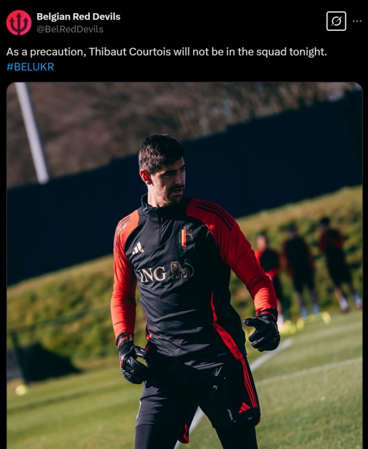 對此,比利時國家隊表示,作為預防措施,庫爾圖瓦沒有進入比賽陣容。