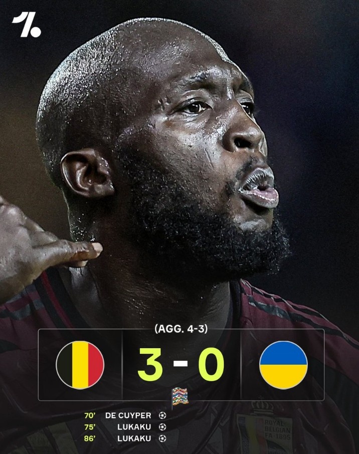 3月24日訊 在歐國聯(lián)A聯(lián)賽升級(jí)賽次回合,比利時(shí)3-0擊敗烏克蘭,兩回合總比分4-3獲勝。