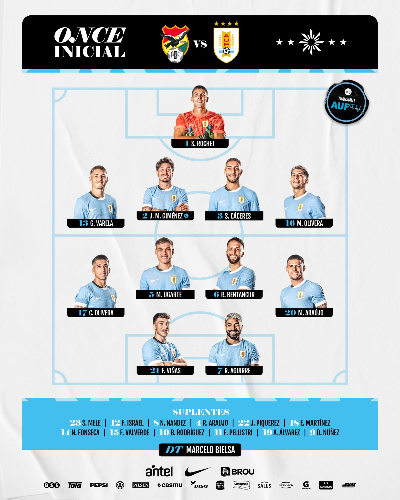 烏拉圭vs玻利維亞首發(fā):巴爾韋德&阿勞霍&努涅斯替補,烏加特先發(fā)