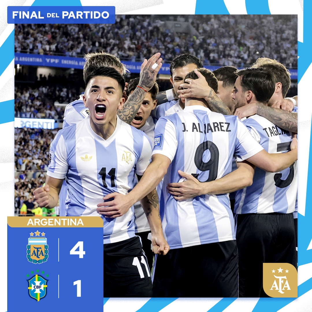 這也是巴西隊(duì)首次在世預(yù)賽兩回合均不敵阿根廷。這是自1964年以來巴西隊(duì)首次以三球及以上分差不敵阿根廷隊(duì),而兩隊(duì)交鋒史上最懸殊比分要追溯到1940年的友誼賽,當(dāng)時(shí)巴西1-6慘敗。