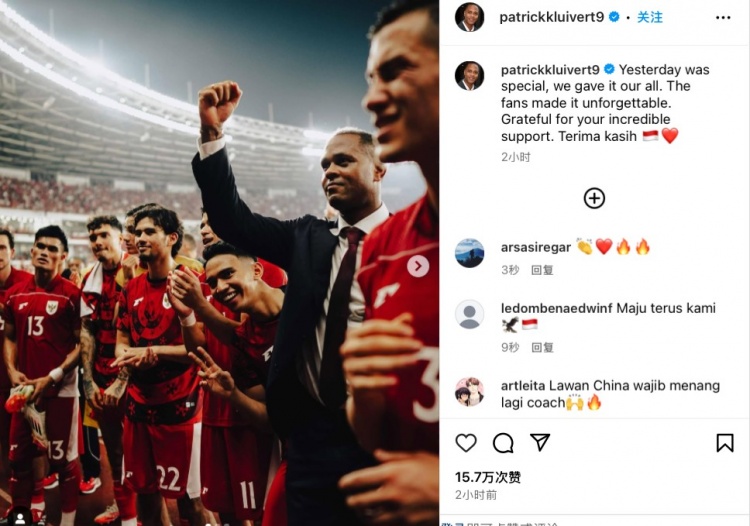 今日克魯伊維特更新社媒,曬出了全隊(duì)圍在一起慶祝勝利的照片,并配文寫道:“昨天是特別的一天,我們?cè)趫?chǎng)上傾盡所有,球迷們的加油助威讓這晚更加難忘。謝謝你們令人振奮的支持,感謝(印尼語(yǔ))?!?/p>