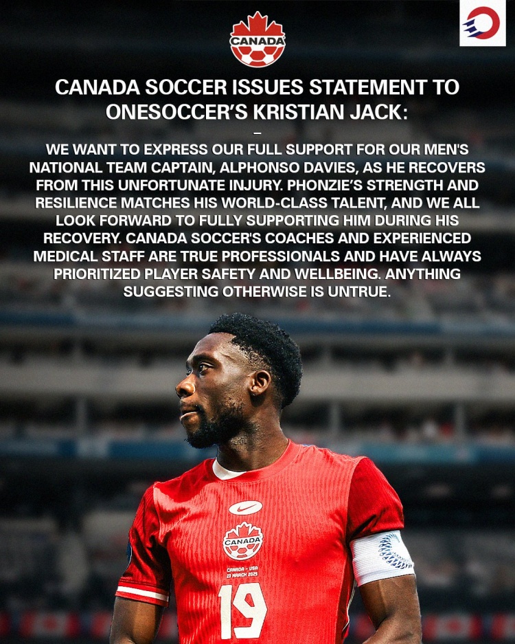 - 強行讓阿方索出戰(zhàn)?加拿大足協(xié):沒有不顧球員健康,將全力支持他