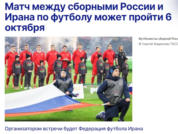 即將解禁!俄羅斯將于10月6日與伊朗進(jìn)行友誼賽